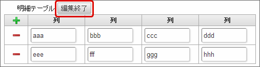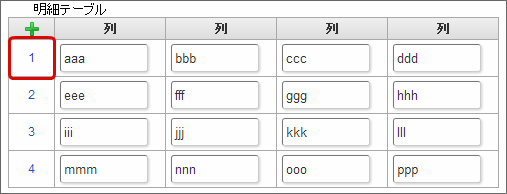 「行追加可能」のチェックがオフの場合、テーブルに表示する行数を設定できます。