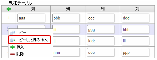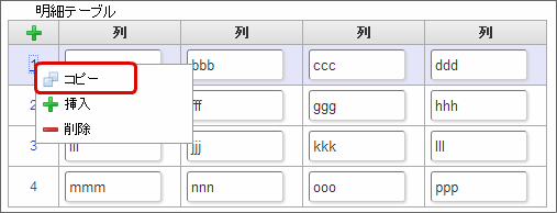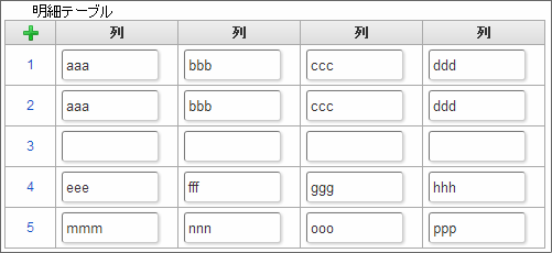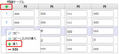 クリックすると、明細テーブルの列を追加します。