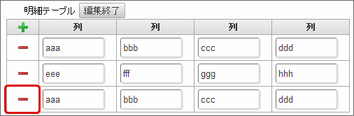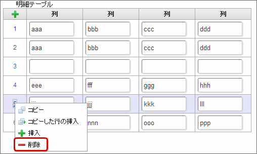 クリックすると、明細テーブルの列を削除します。コラム