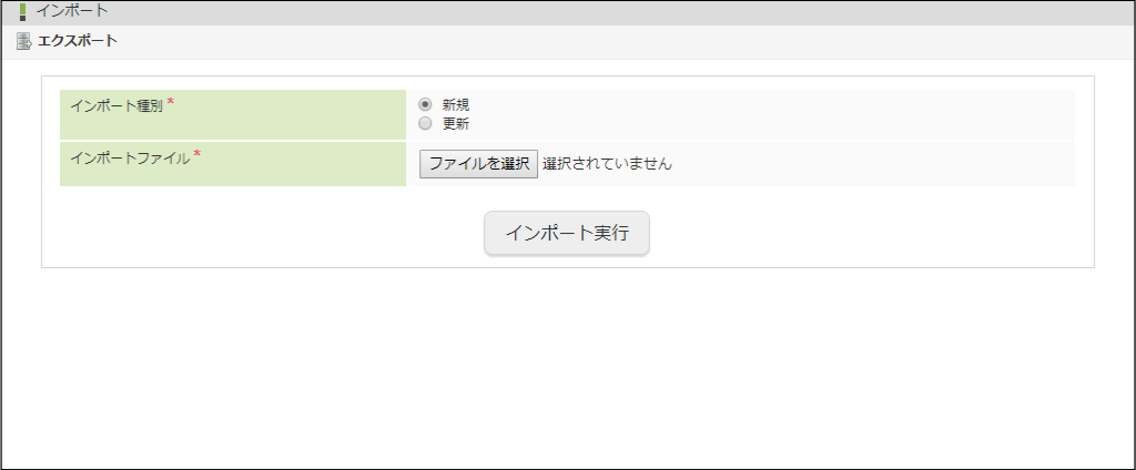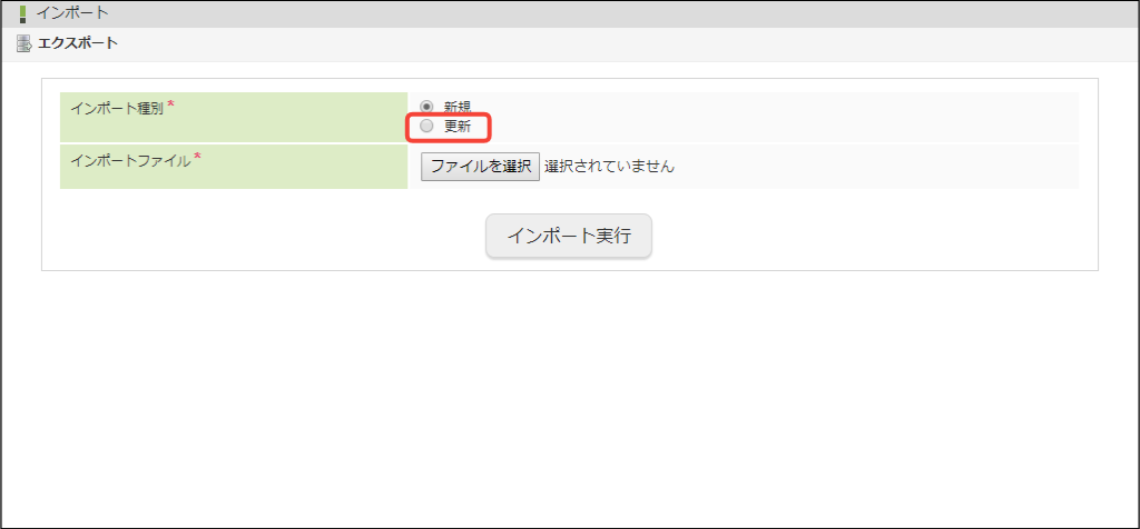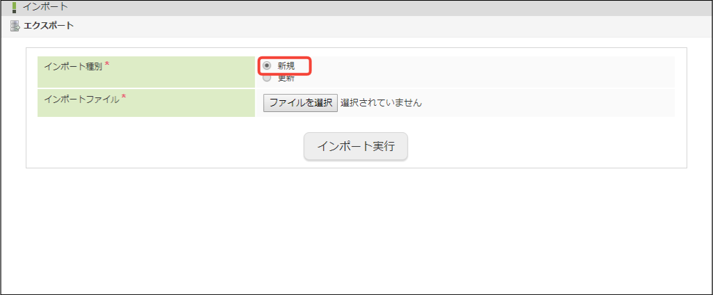 インポート種別は「新規」または「更新」の2種類が存在します。