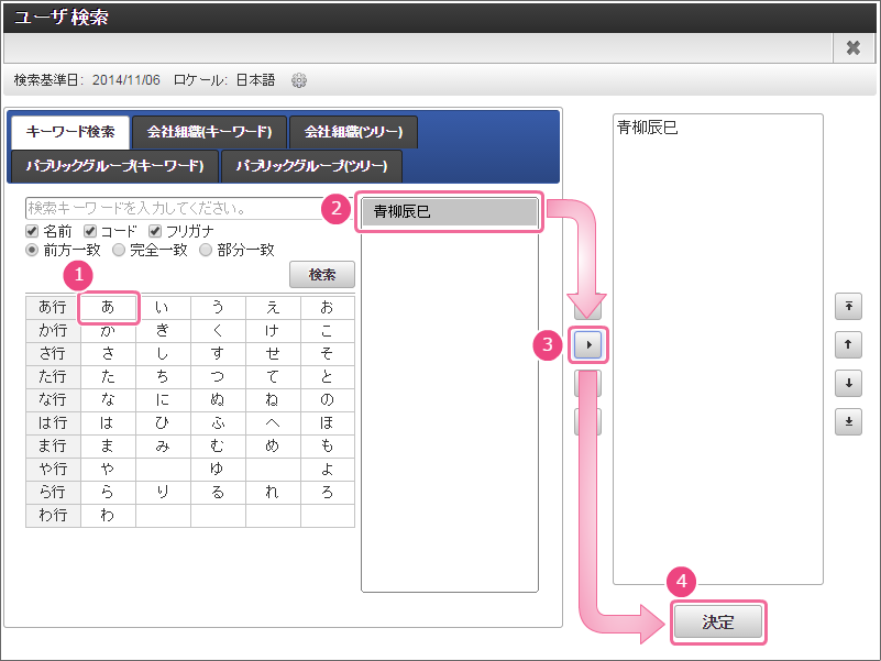 3. 続いて、以下の手順で処理対象者のユーザを検索しましょう。