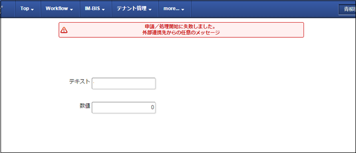 imfrErrorFlagが「true」の場合、標準処理画面のエラーメッセージボックスに指定メッセージを付加して表示されます。