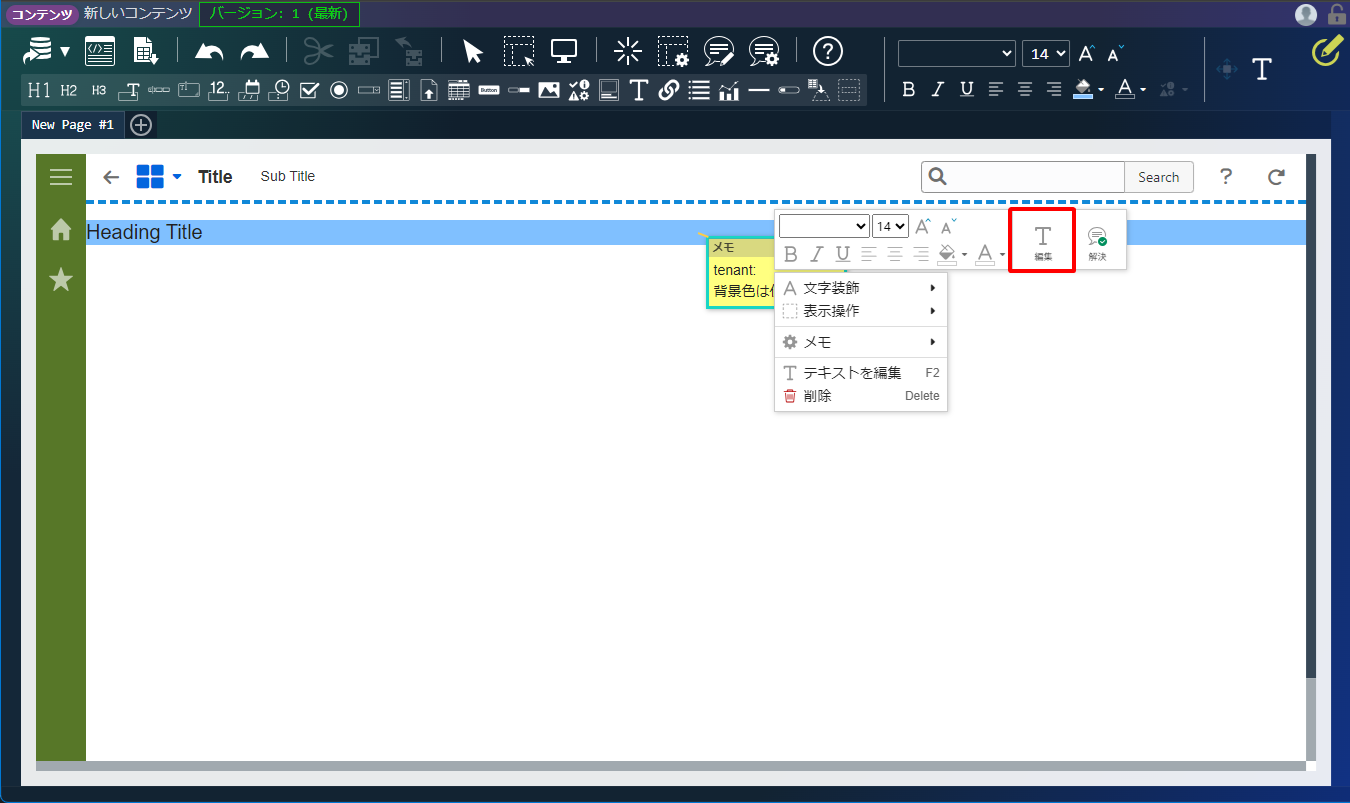 ヘッダの「メモ追加・編集」アイコンからメモを追加できます。詳細は「ヘッダ」を参照してください。