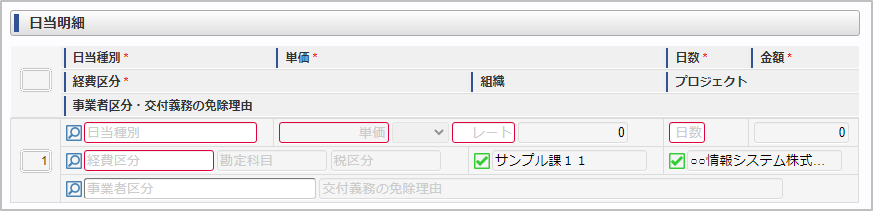 日当種別と日数が入力されると、日当単価 × 日数が金額欄に計算されます。