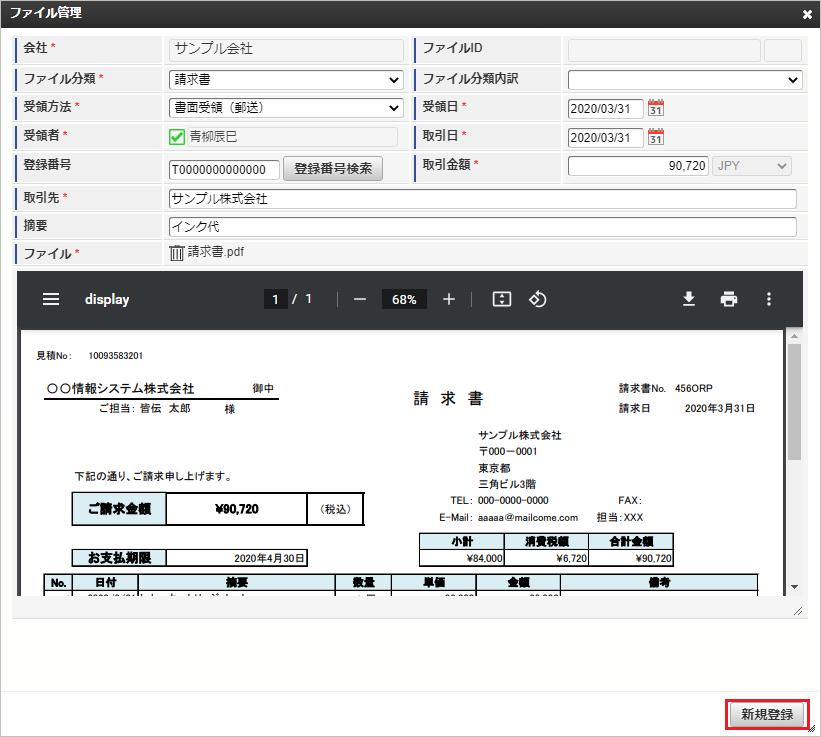 ファイル登録機能は、「ファイル管理」にファイルを登録する機能です。 ファイル登録機能が利用できる場合には、以下のように「ファイル登録」リンクが表示されます。 コラム ファイル登録機能を利用する際は、以下認可の許可が必要です。 「画面・処理/Kaiden!/マスタメンテナンス/汎用」の権限 「画面・処理/個人設定/ファイル管理」の権限 ファイルを登録する会社の編集権限