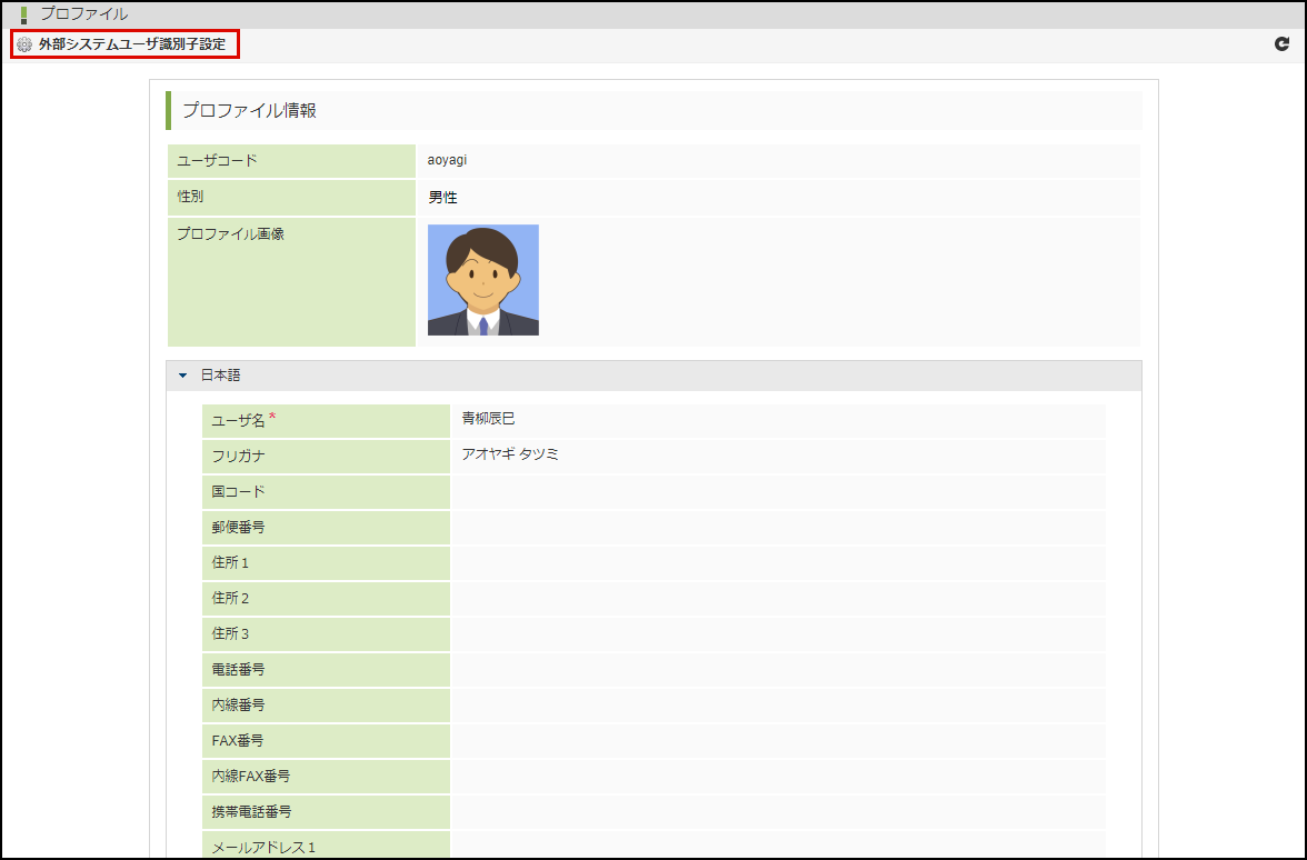 ツールバーの「外部システムユーザ識別子設定」をクリックします。