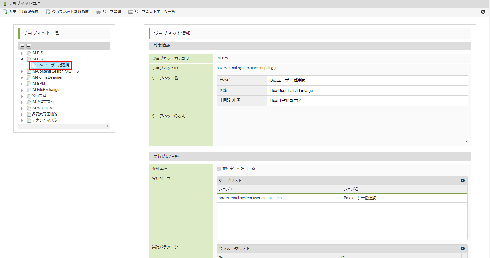 WARファイルのデプロイ後、テナント環境セットアップを実行することにより、ジョブ・ジョブネットがインポートされます。