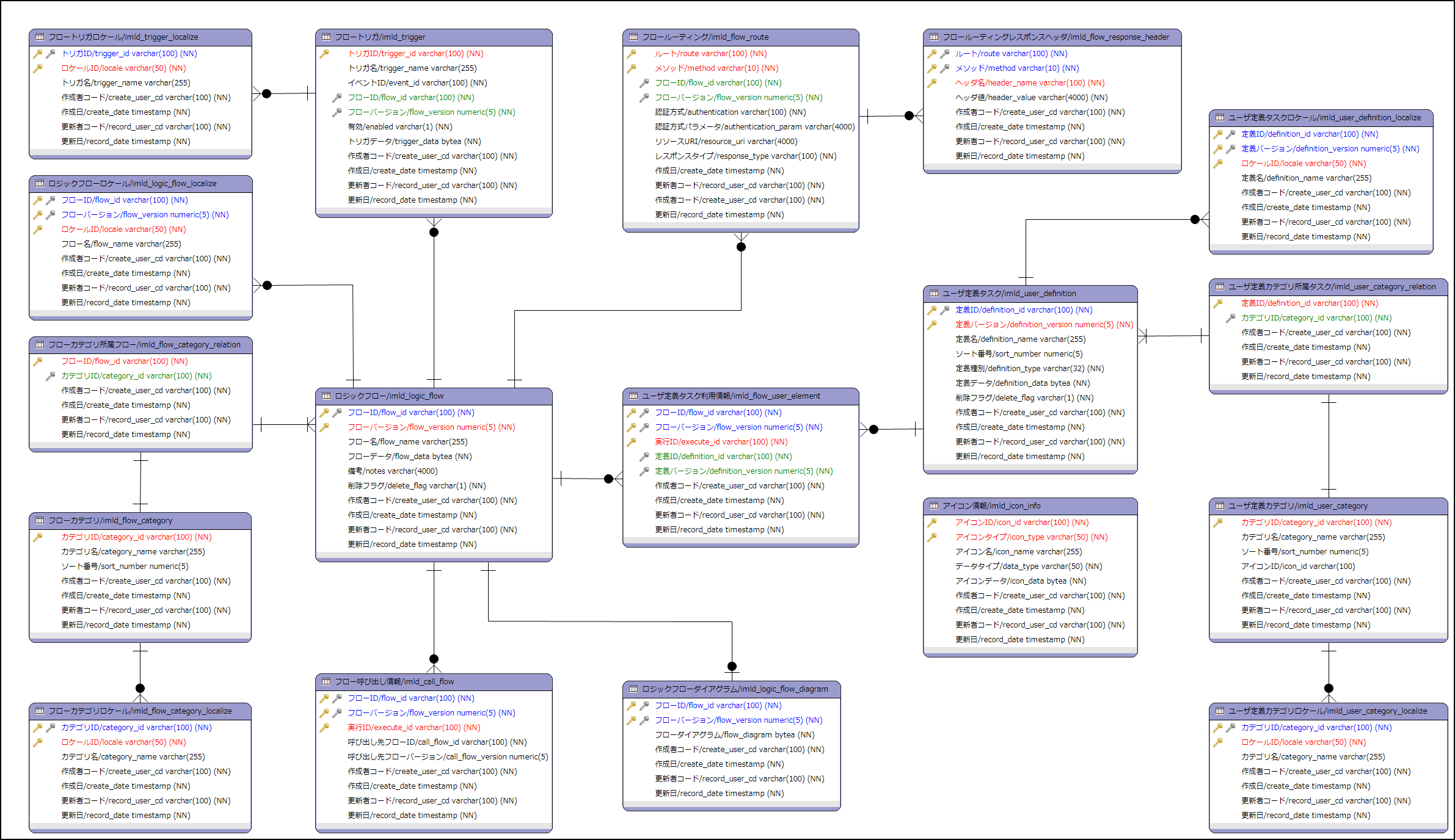 図: IM-LogicDesignerのテーブルER図