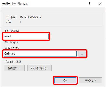 エイリアス imart 物理パス C:\imart 「imart」ディレクトリが作成されていることを確認してください。