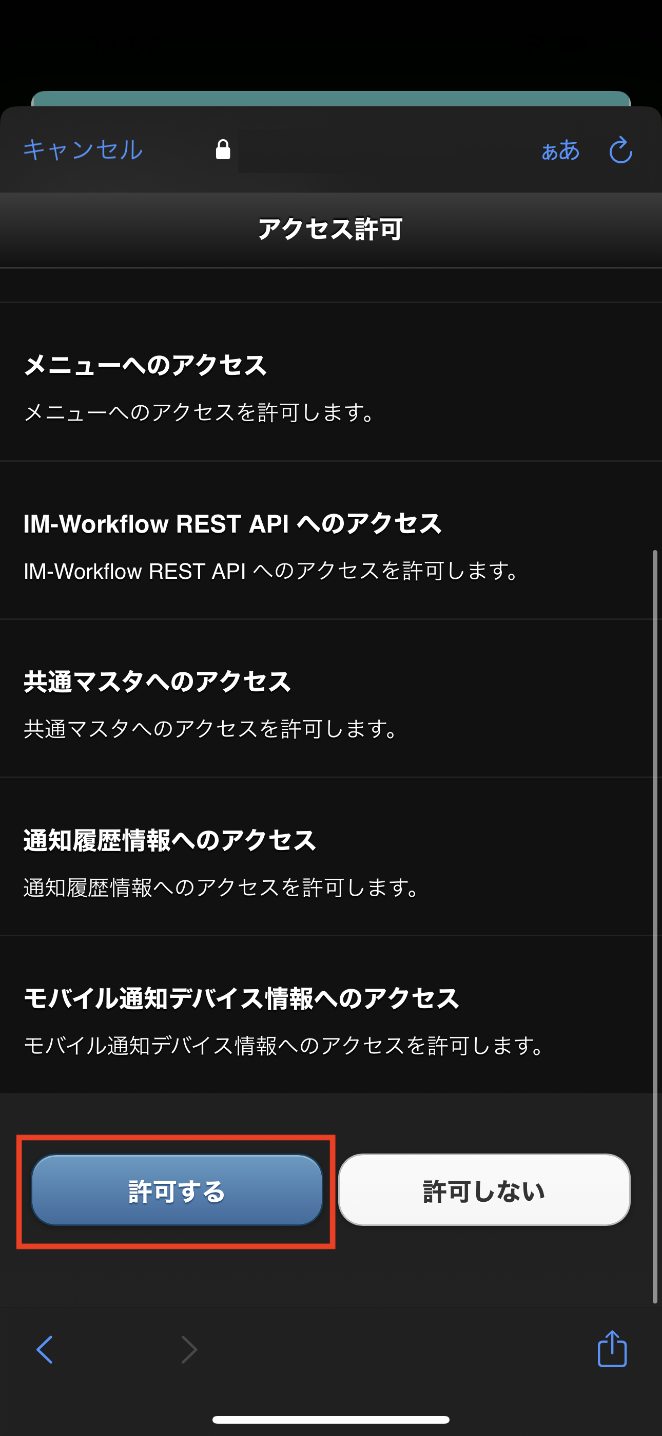 - デバイスの通知設定変更後、「 設定を利用する 」から「通知の許可」のトグルスイッチを「ON」に切り替えます。