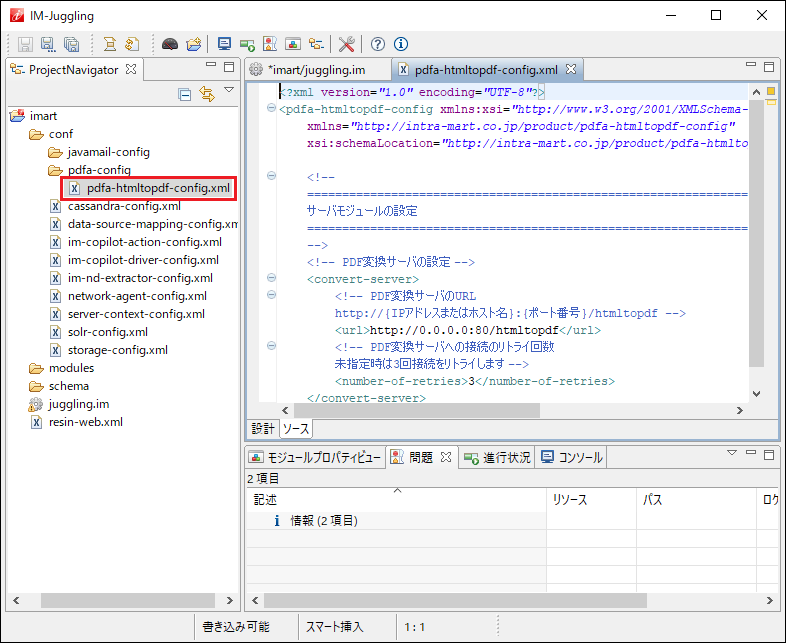 HTML→PDF変換 の設定ファイル< pdfa-htmltopdf-config.xml >を追加し、編集する手順を示します。