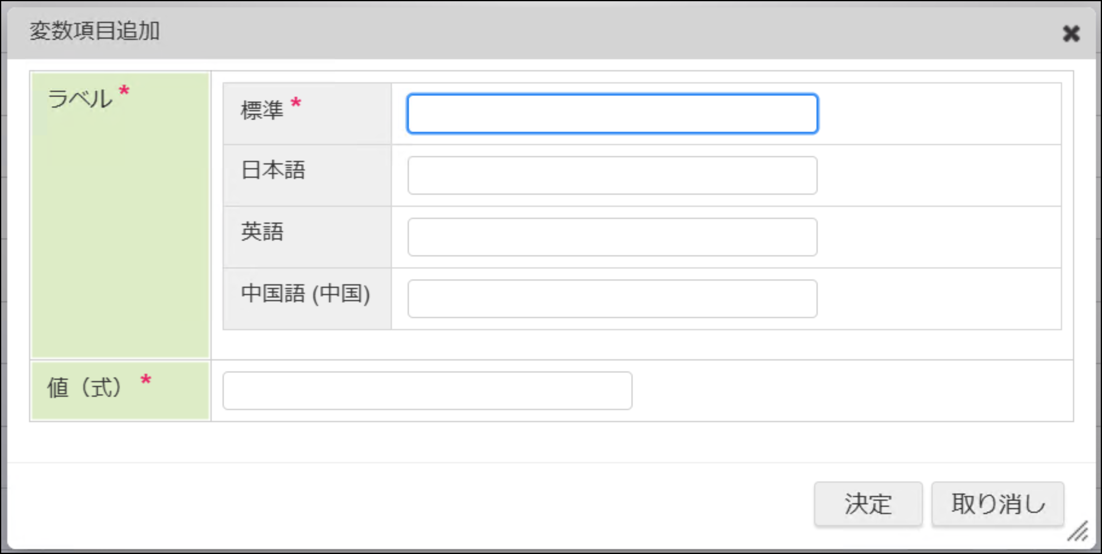 ※ 「IM-BPM 管理者」の場合のみ「変数項目追加」ボタンが表示されます。