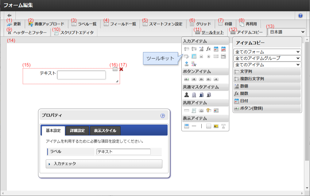 6.3.4. 「フォーム・デザイナ」画面の各部の名称と機能¶