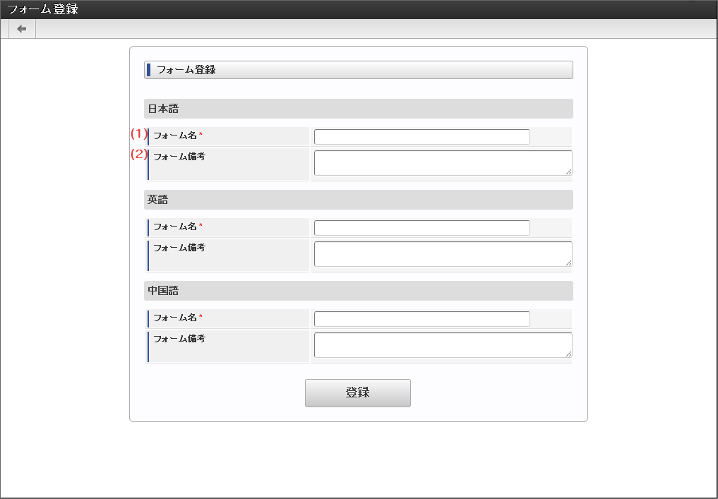 - 編集するフォームが一覧に出ていない場合には、「登録」をクリックします。