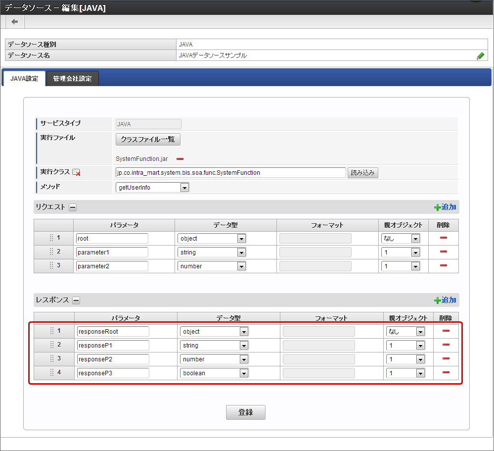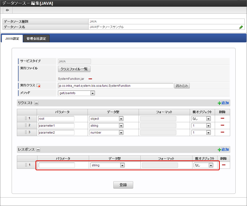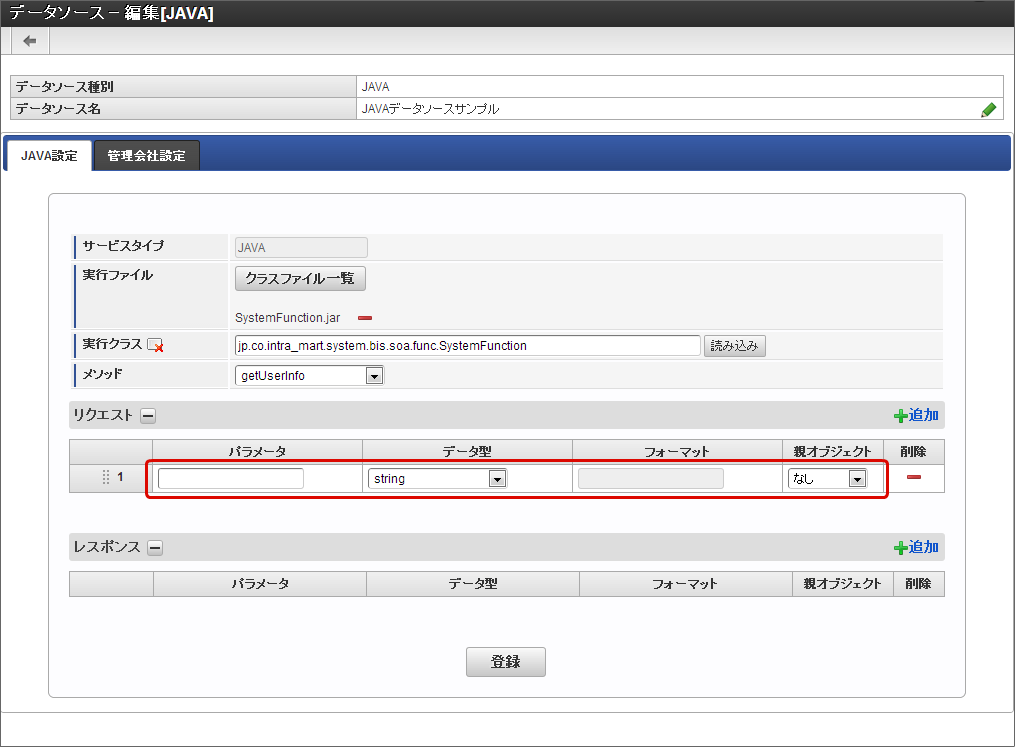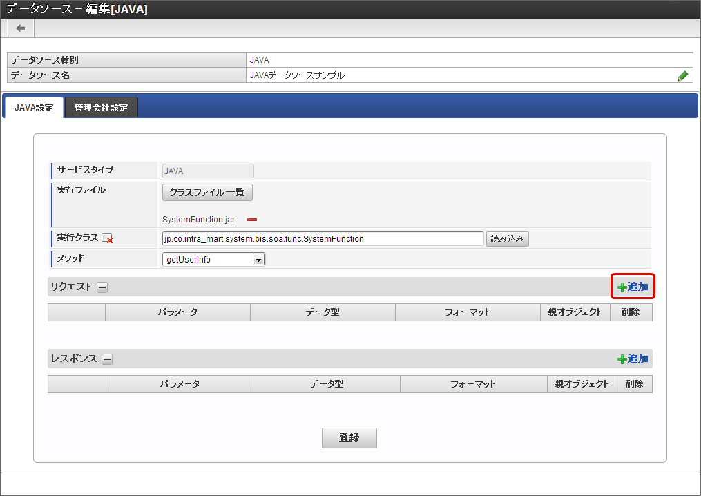 「データソース - 編集[JAVA]」画面の操作手順¶