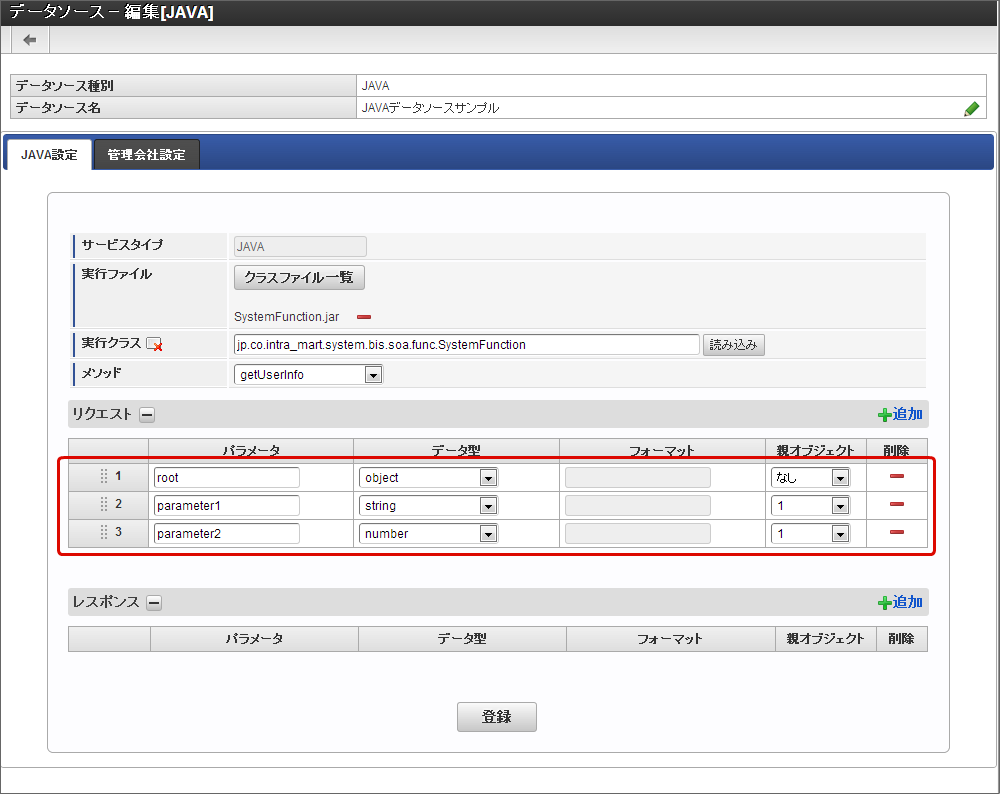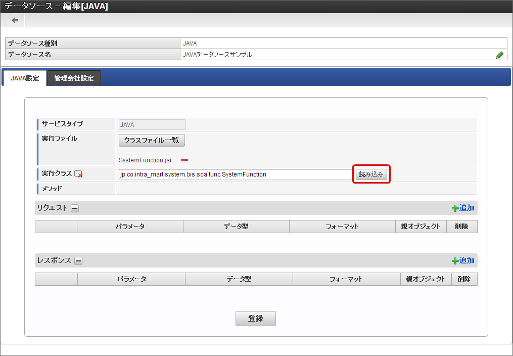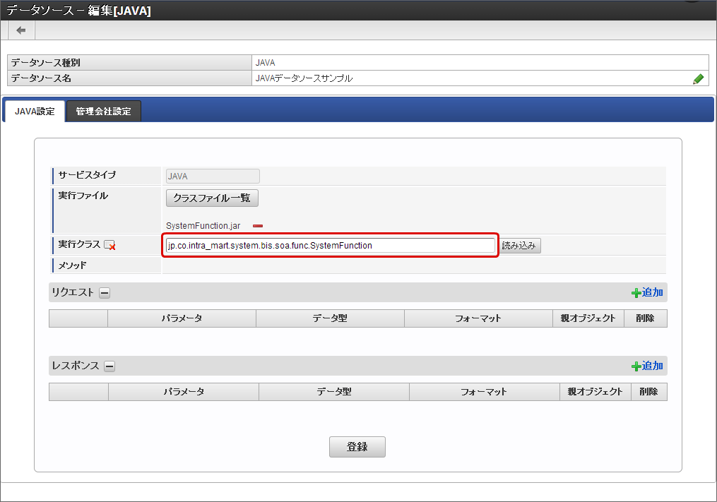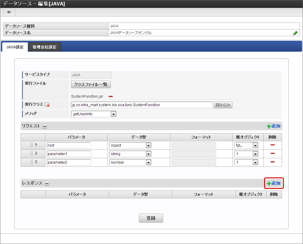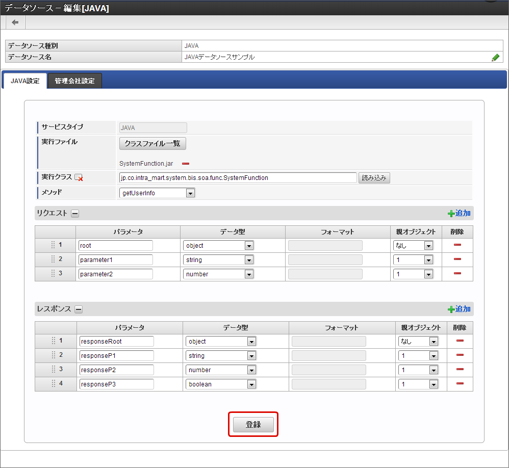 「データソース - 編集[JAVA]」画面の操作手順¶