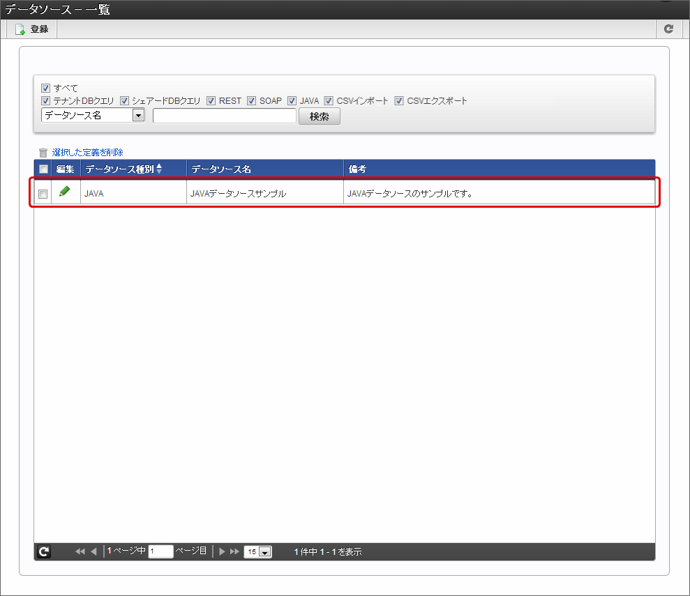 正常に登録できると、次のように「データソース - 一覧」画面に追加されます。