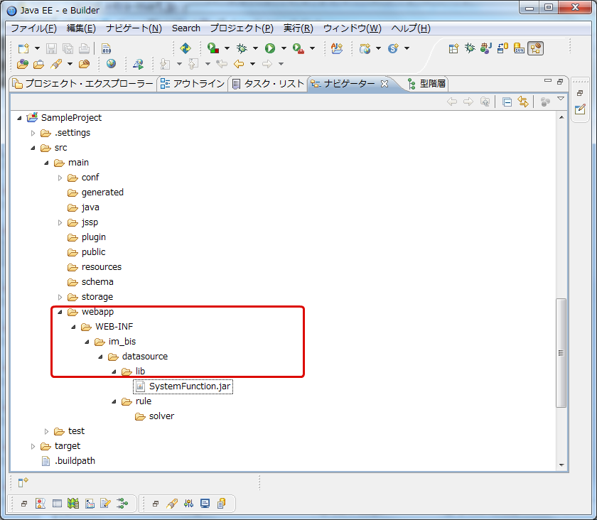 JARファイルのクラス名を完全修飾クラス名で指定します。読み込み