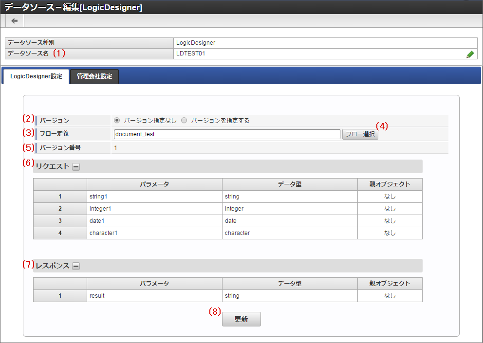 「データソース - 編集[LogicDesigner]」画面の内容は以下の通りです。