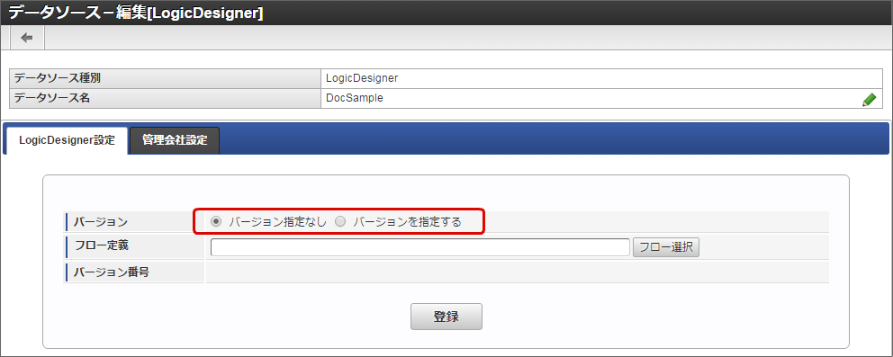 バージョン指定なし常に最新の IM-LogicDesigner のフロー定義のバージョンで処理を実行します。フローの入出力設定が、データソース定義作成時から変更されていない場合に有効です。 バージョンを指定する特定のバージョンを指定して IM-LogicDesigner のフローを実行します。コラム