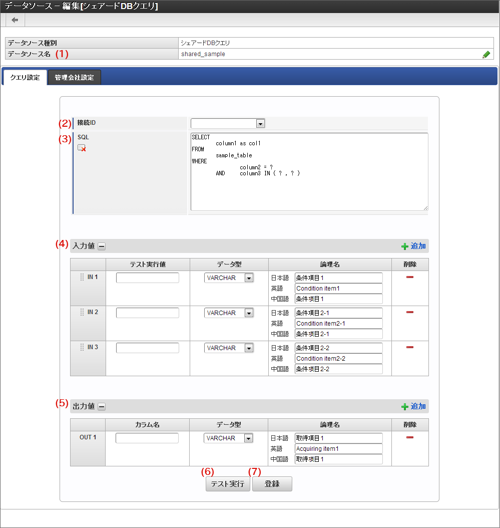 「データソース - 編集[シェアードDBクエリ]」画面の機能と各部の説明¶