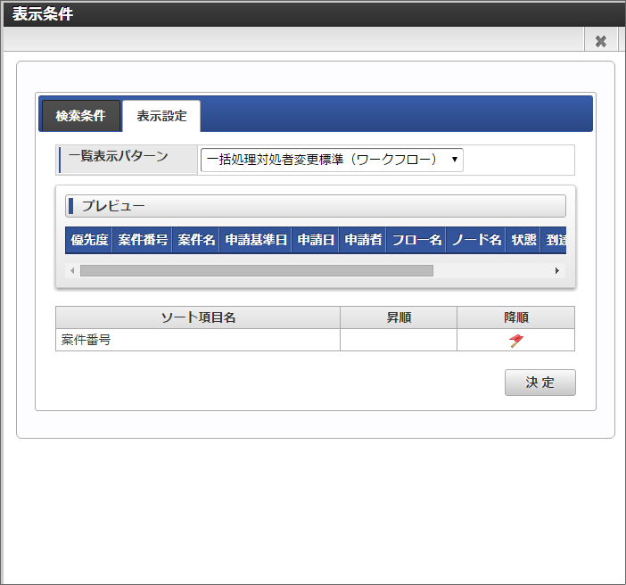 一覧表示パターンを選択することで、現在表示されている参照対象の案件一覧の表示項目やソートを変更できます。