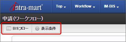 IM-BPM のリリースに伴い、簡易BPMであるBIS作成種類「BISフロー」を利用しないケースが想定されます。そのため、 IM-BIS 2016 Summer(8.0.11)以降、BIS作成種類「BISフロー」を利用しない場合、BPMに関連するリンクや画面のボタンを非表示にできます。また、名称が重複するため、BIS作成種類「BPM」を「BISフロー」に変更しています。