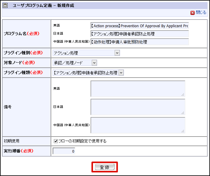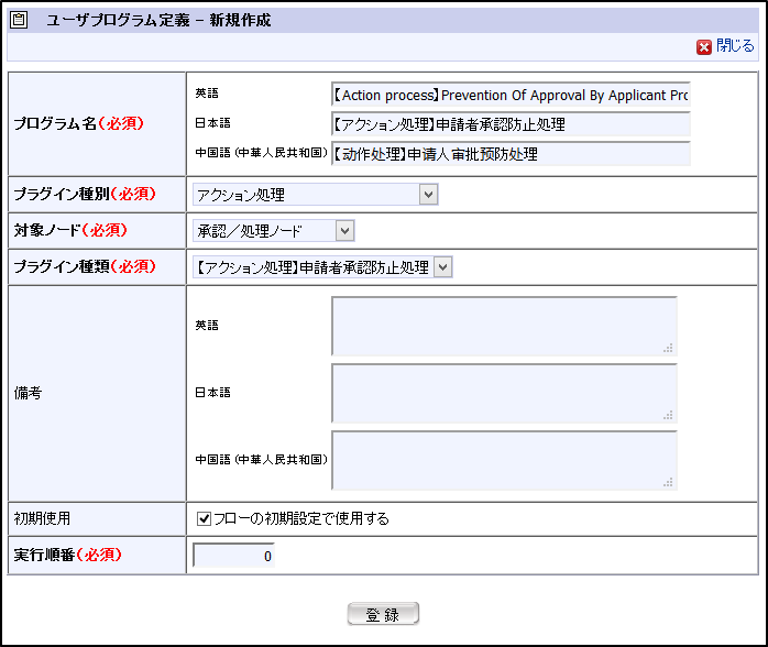 ここでは、 IM-BIS のワークフローにおいて、ユーザプログラム「申請者承認防止処理」を利用するための方法を説明します。