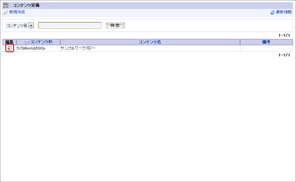 「サイトマップ」→「ワークフロー」→「ワークフロー管理者」→「マスタ定義」→「コンテンツ定義」をクリックします。
