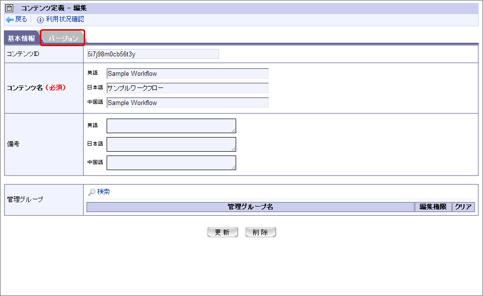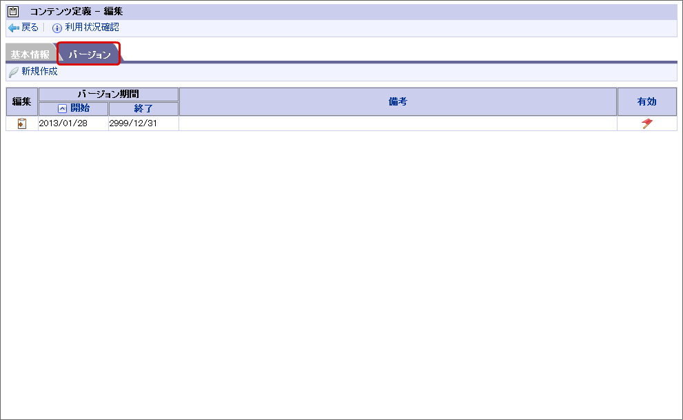 「バージョン」をクリックします。