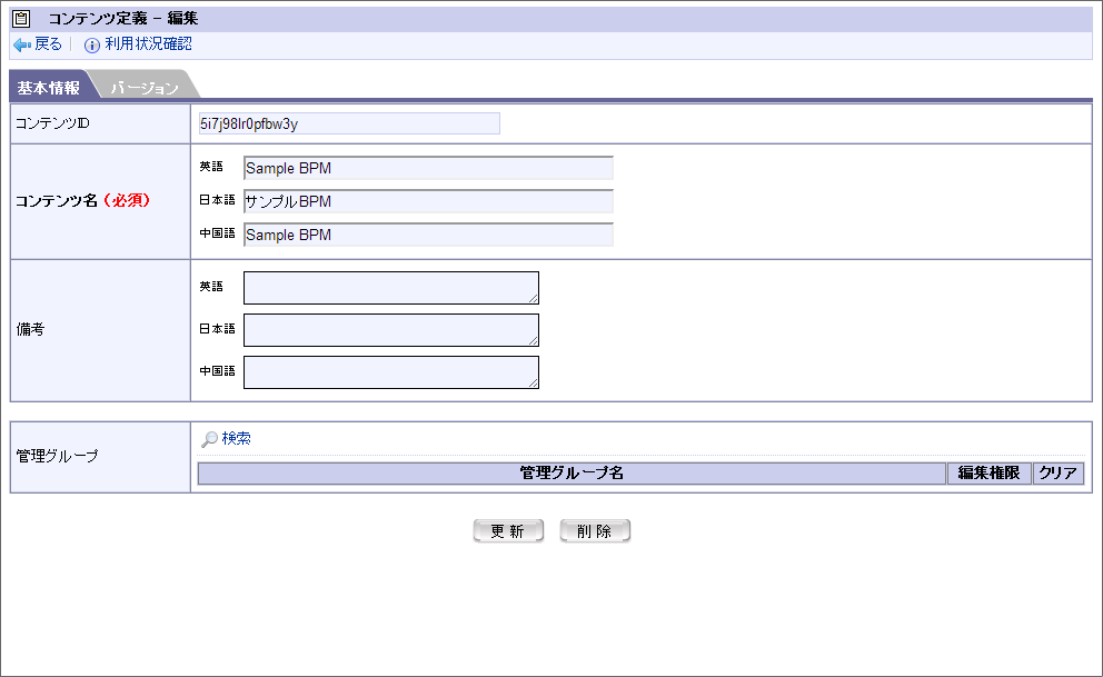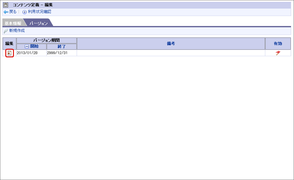 設定する対象のBIS名のコンテンツ定義の