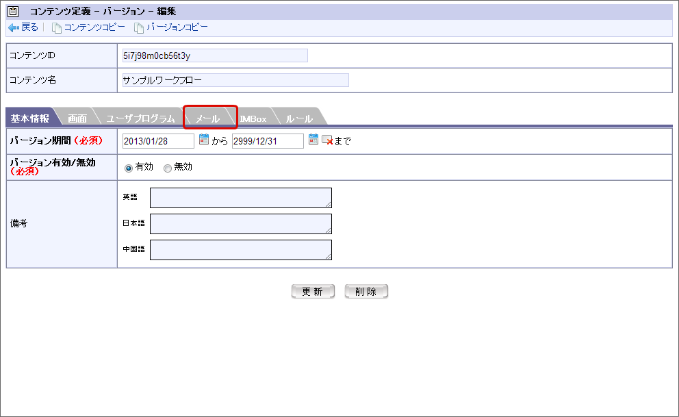 5.5. メールや IMBox を設定する(メール/ IMBox定義)¶