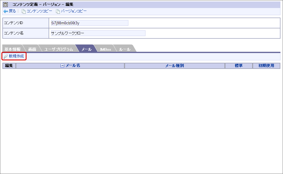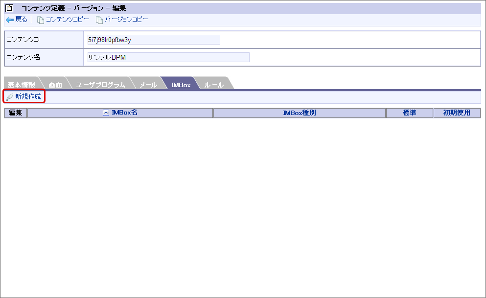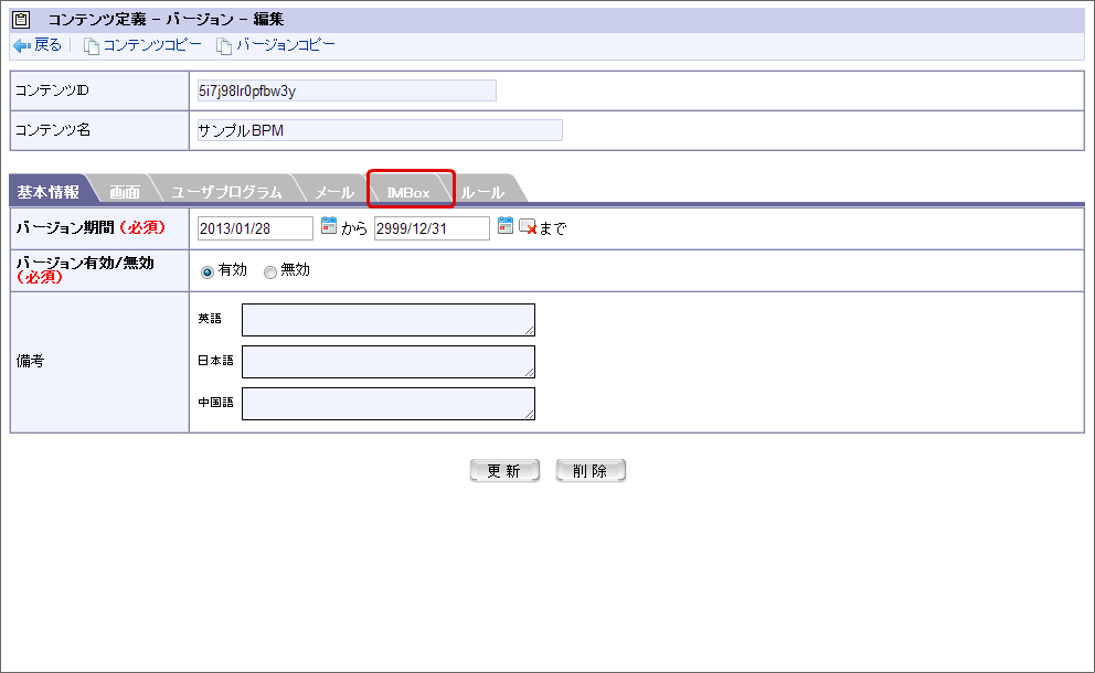フローの処理時に IMBox の通知を利用できるように、コンテンツ定義に IMBox の設定を行います。