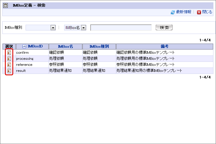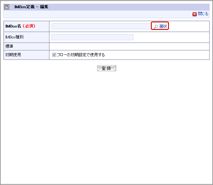 「IMBox 定義 - 編集」画面で「選択」をクリックします。