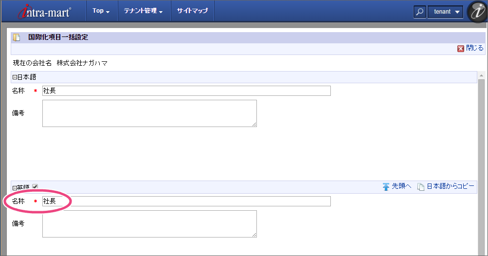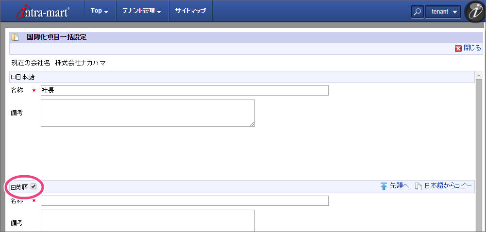 日本語で設定した内容を、他の言語(図では英語)にコピーすることができました。