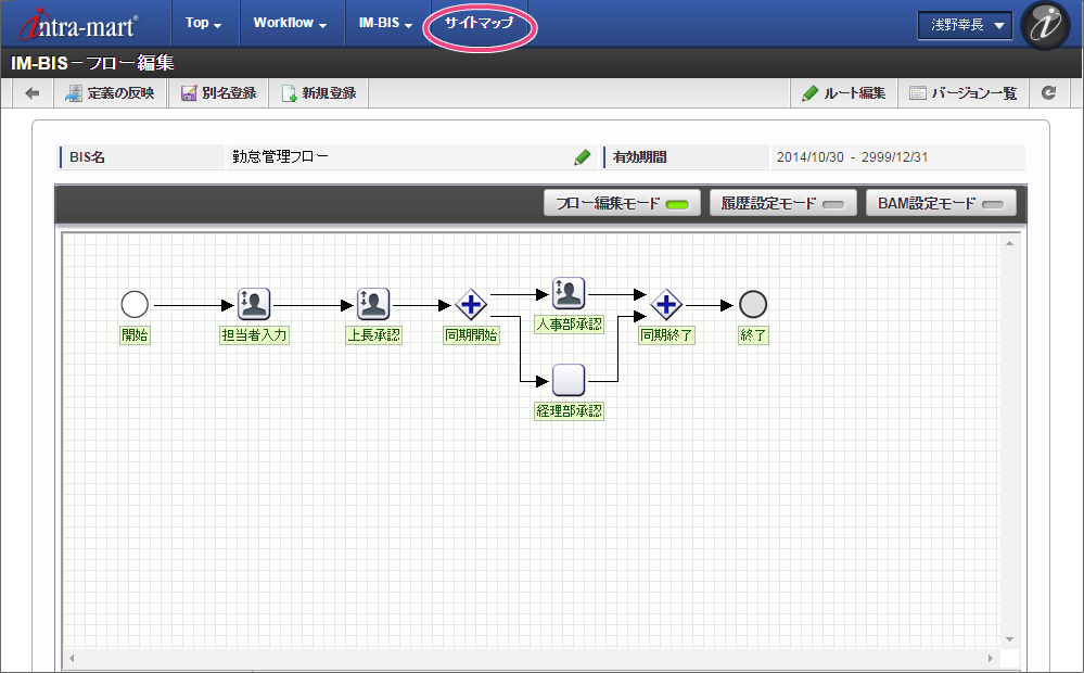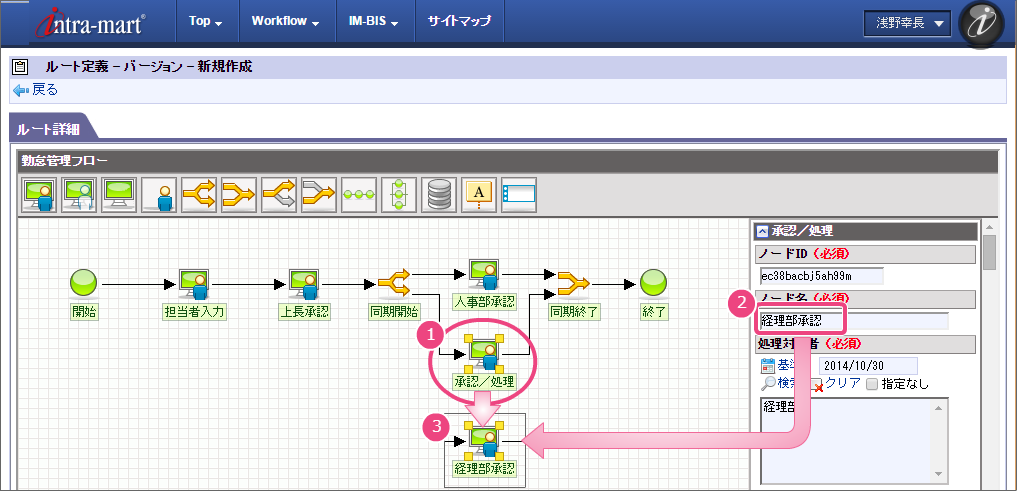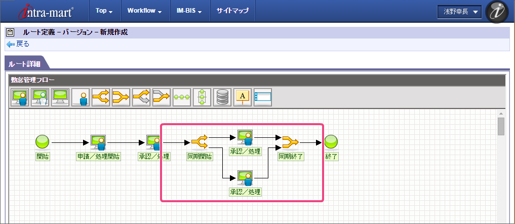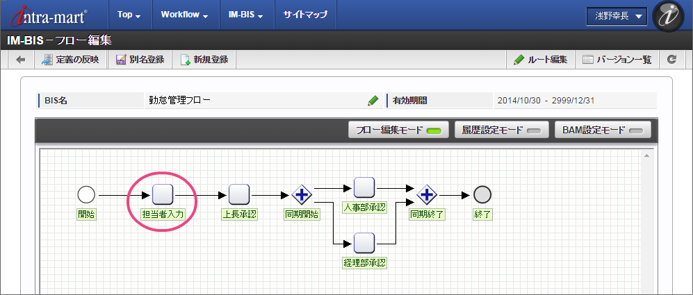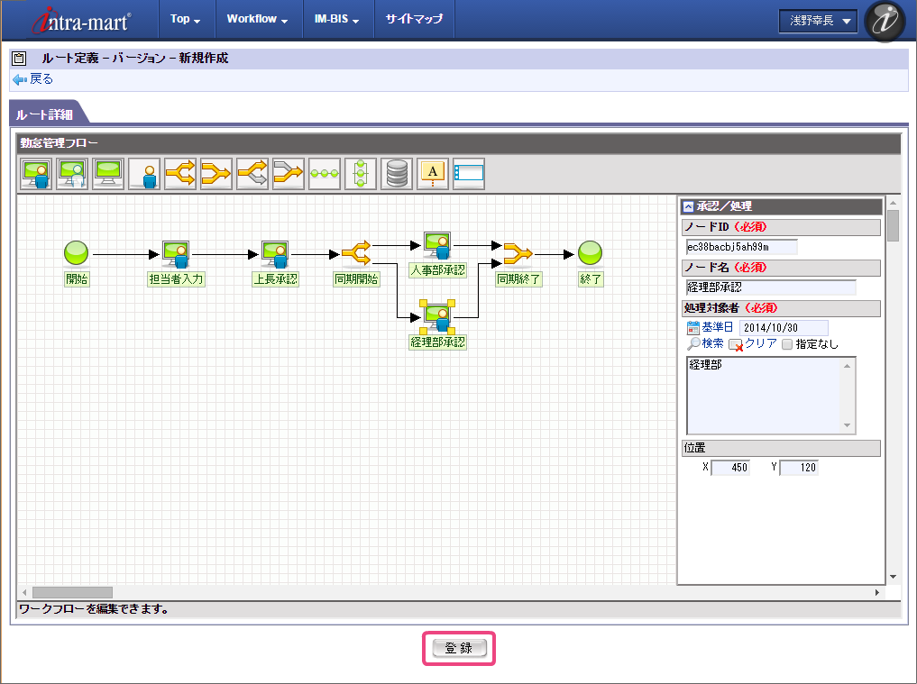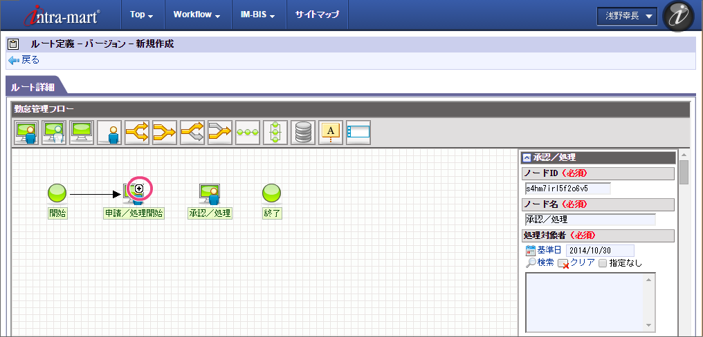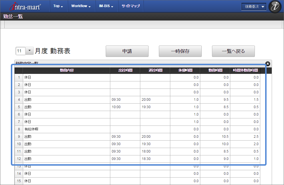 ここでは、 IM-BIS を利用して毎月の勤怠状況を一覧として上長や人事に承認してもらうまでのワークフローを作成しましょう。