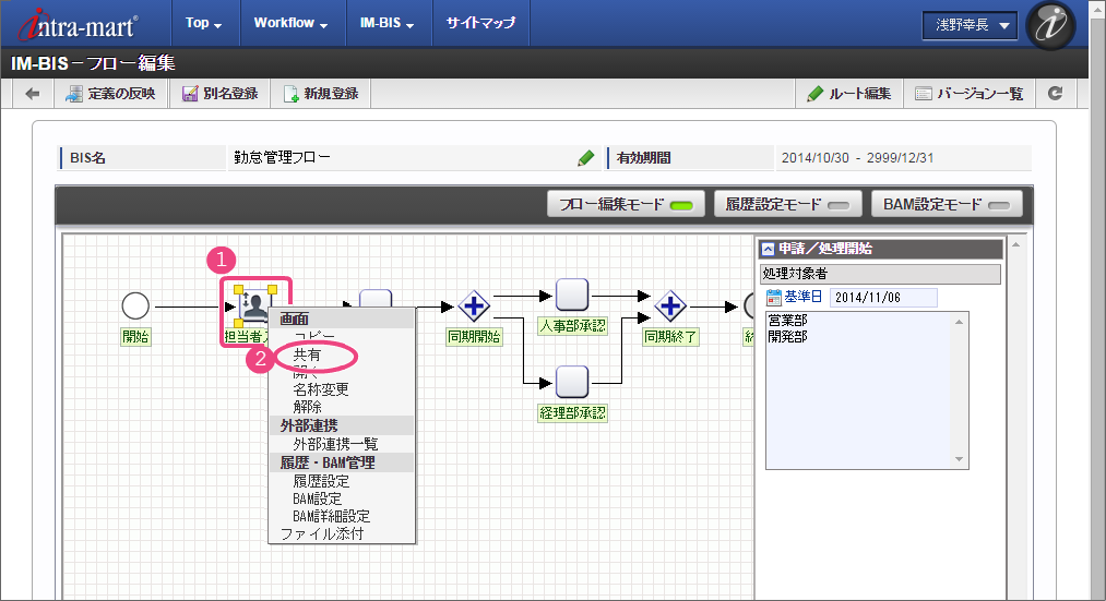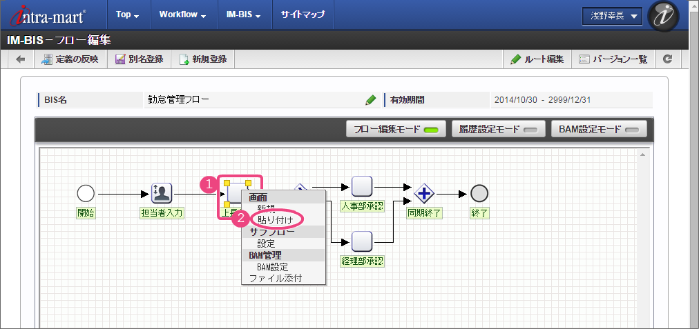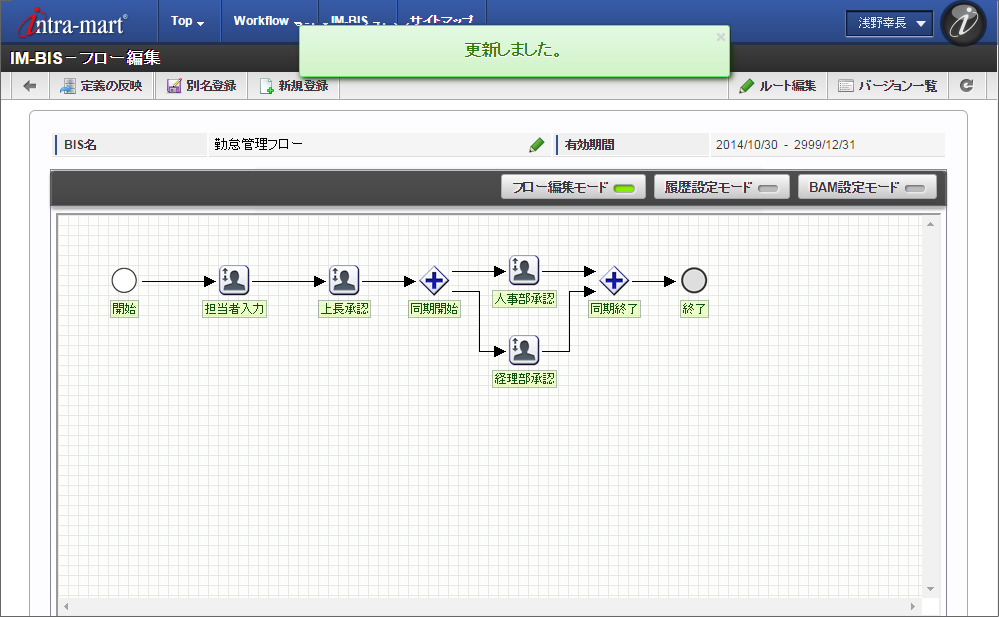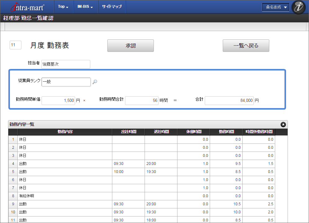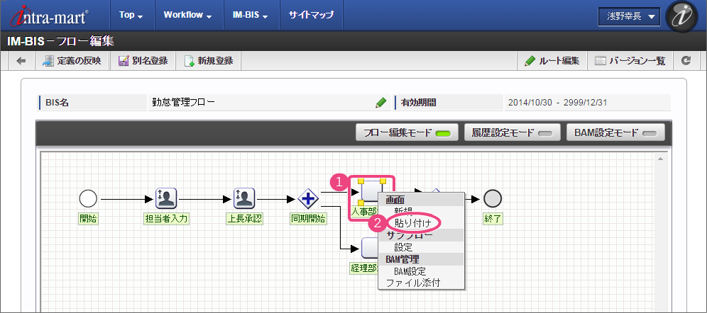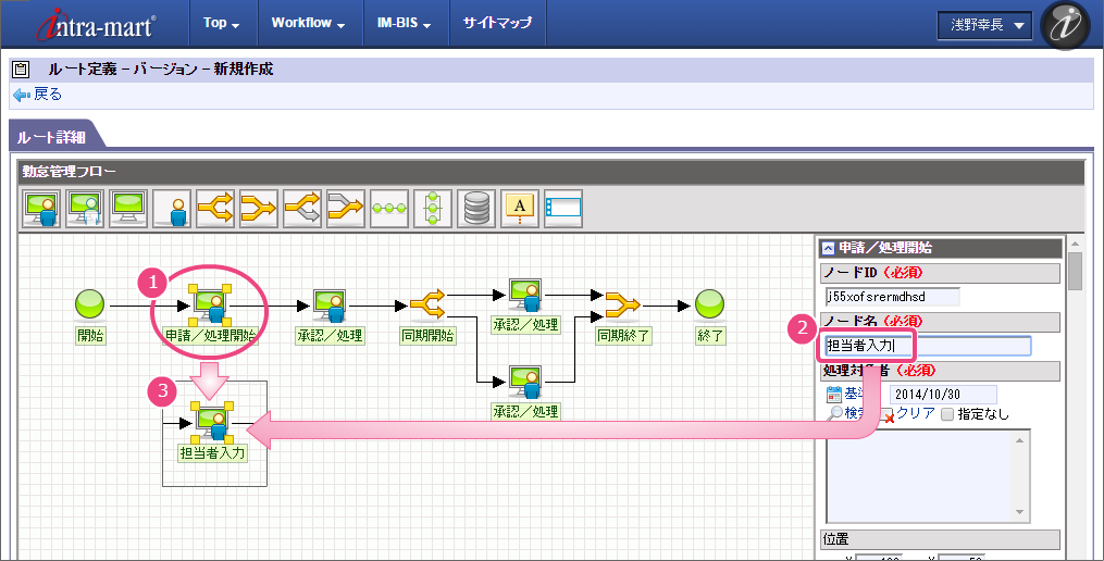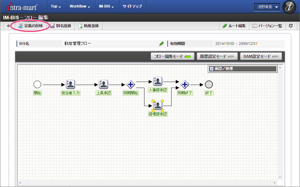 ここでは、 IM-BIS を利用して毎月の勤怠状況を一覧として上長や人事に承認してもらうまでのワークフローを作成しましょう。