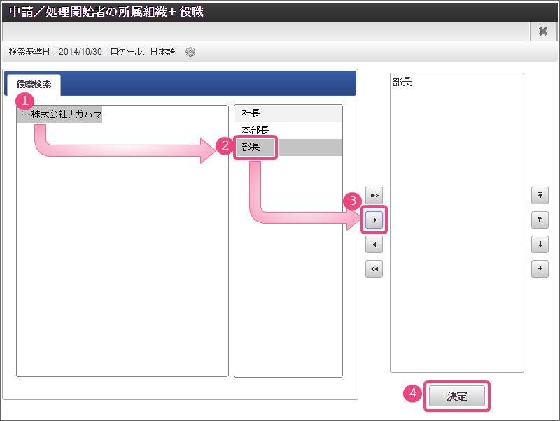 - 中央の欄に表示された役職から「部長」をクリックしてください。
