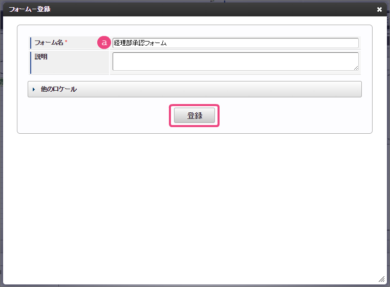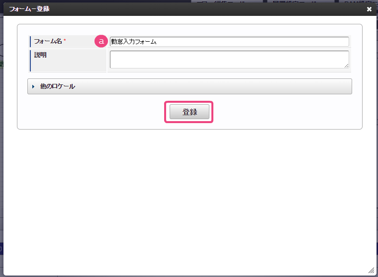 「フォーム-登録」画面では、以下の通りに入力し、「登録」をクリックしてください。