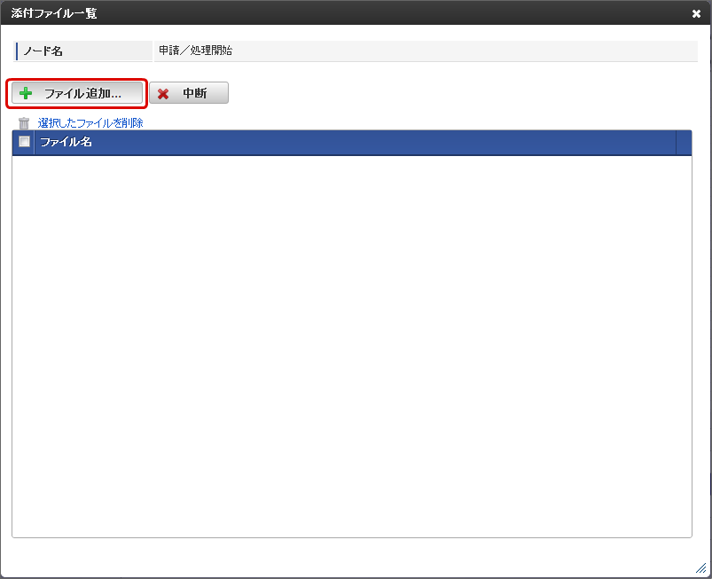 フロー実行中のファイルのアップロード・ダウンロードについては、処理画面の添付ファイル機能や画面アイテムのファイルアップロードをご利用ください。