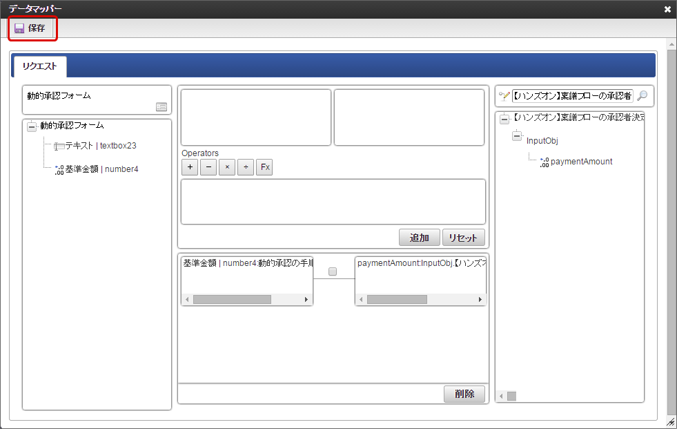 データマッパーで必要な項目のマッピングを設定し、「保存」をクリックします。