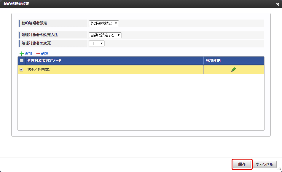 動的処理者設定で 「保存」をクリックします。