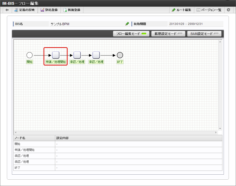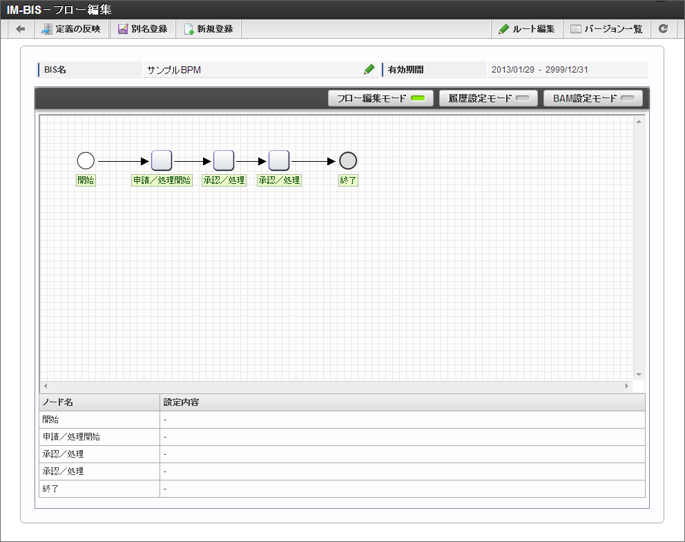 新たにフォームを作成する「IM-BIS - フロー編集」画面を開きます。