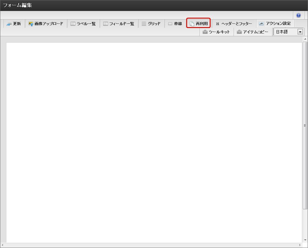 画面の再利用を使う場合、再利用の実行前に編集中の画面の設定を破棄した上でコピーを行います。コピー元の内容を変更する場合には、再利用の実行後に行うか、「アイテムコピー」で画面アイテム単位にコピーを行うようにしてください。