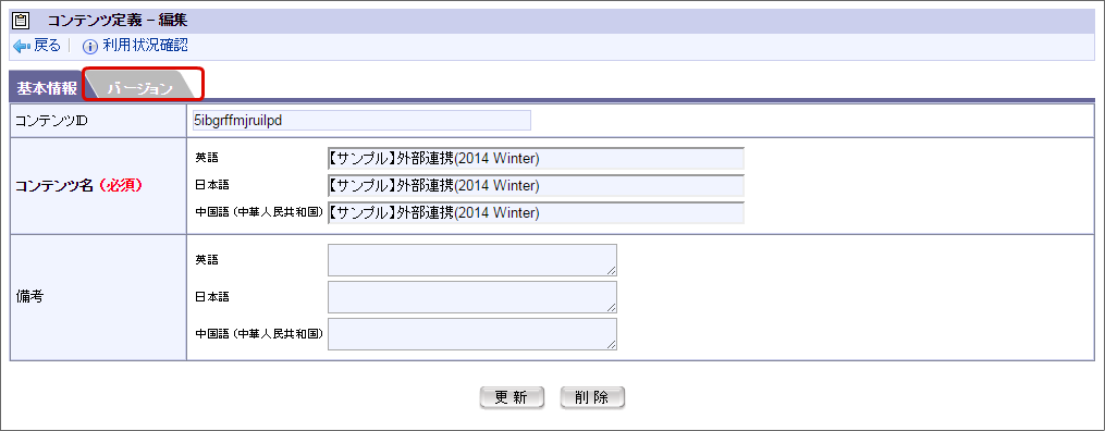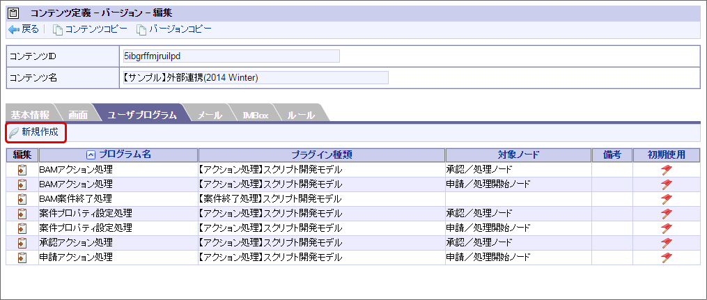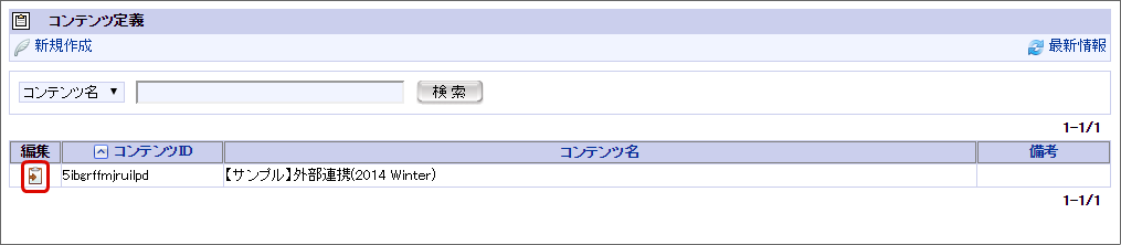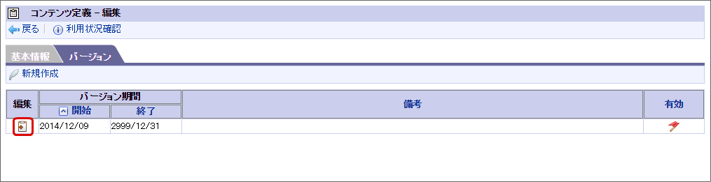 対象のフロー(BIS定義)が参照しているコンテンツ定義の「編集」をクリックします。