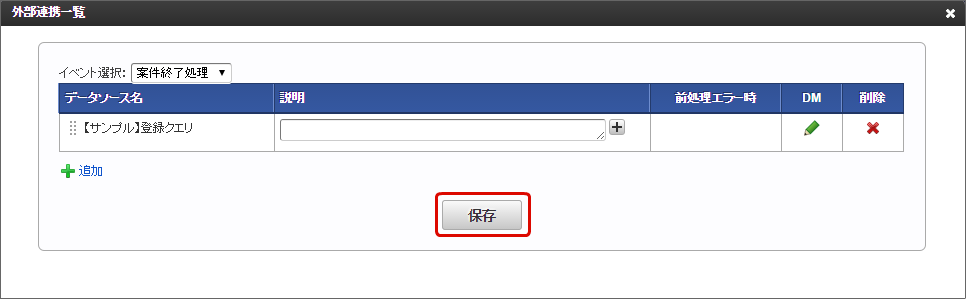 外部連携一覧に追加されますので、必要に応じて説明を入力し、「保存」をクリックします。