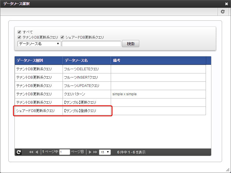 一覧から利用するデータソースを選択します。