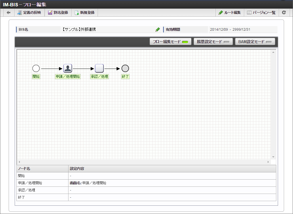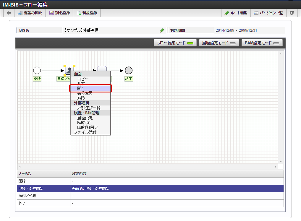 「IM-BIS - フロー編集」画面を表示します。