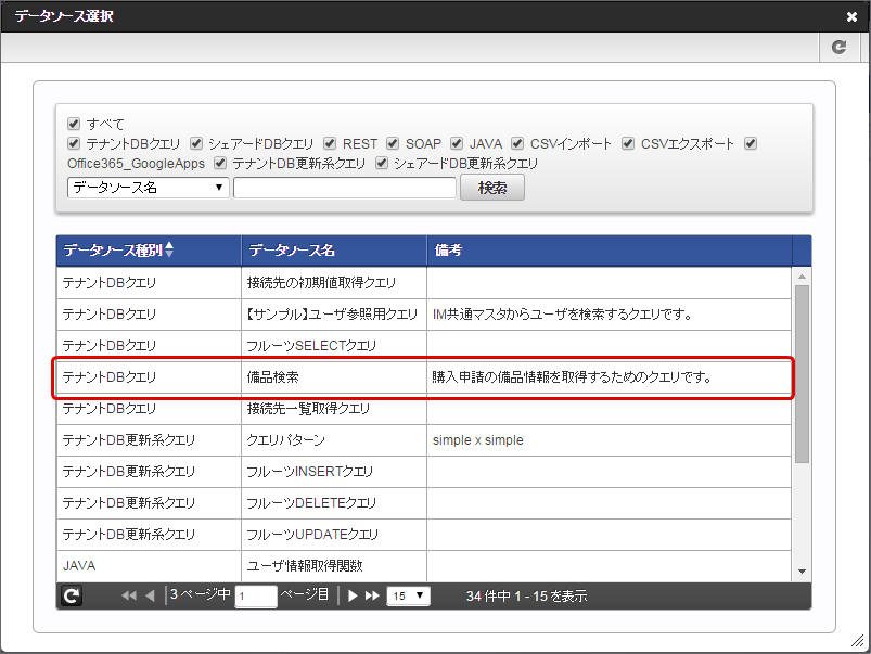 利用するデータソースを一覧から選択します。