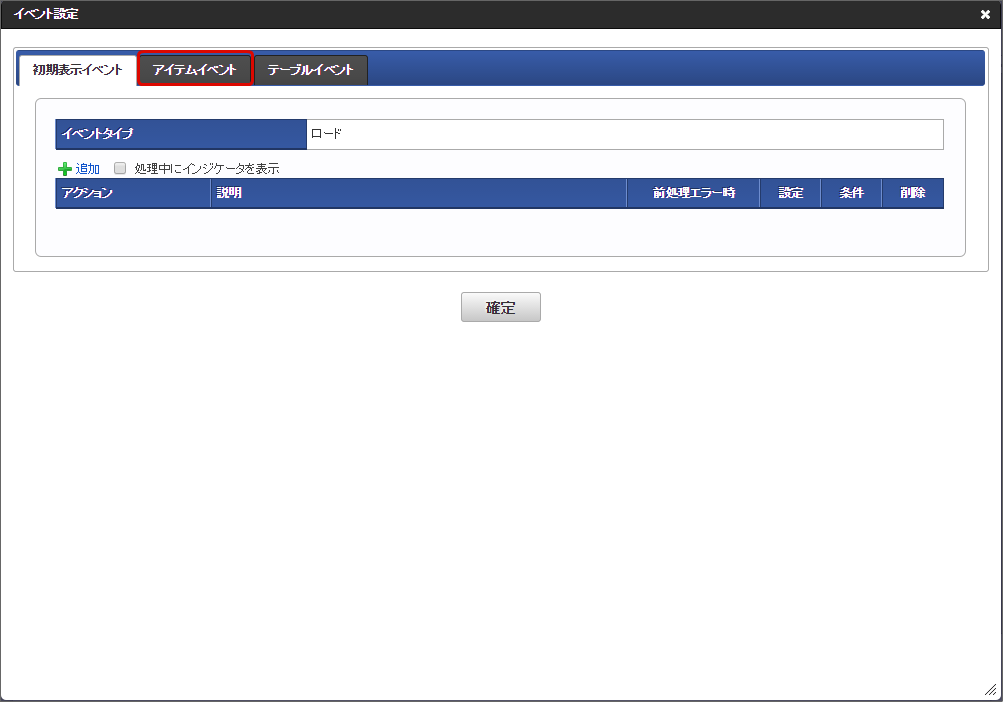 「アイテムイベント」をクリックします。